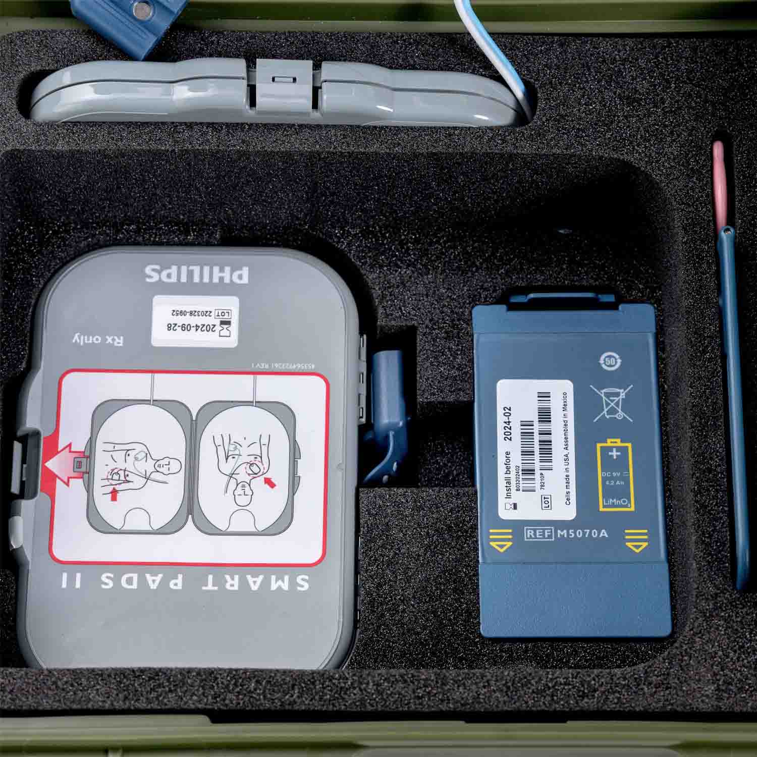TRAUMA KIT Defibrylator AED Philips FRx - Klucz pediatryczny - Krwotoki- RKO/Ochrona osobista - Walizka (zielony)